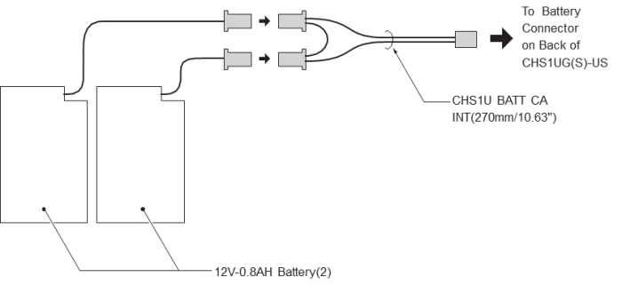 Подключите CHS1U BATT CABLE INT к внутренним батареям (12В-0.8Ач аккумулятор) (см. рисунок ниже).