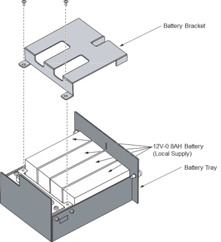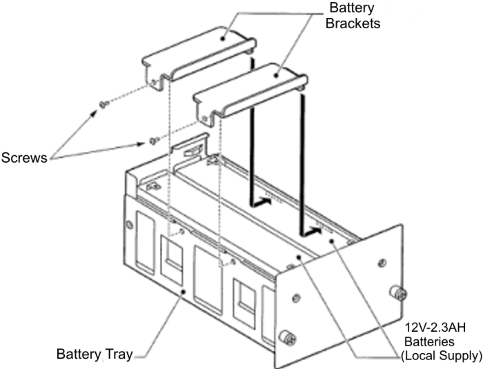 Установите две батареи 2.3 AH-12V в CHS2UG BATT MTG KIT.