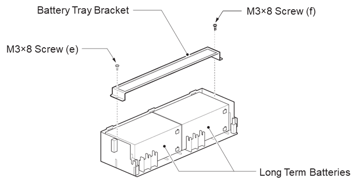 Установите батарею (12В-0,8Ач) в лоток для батарей (CHS2U (D) BATT MTG), затем с помощью прилагаемых винтов закрепите