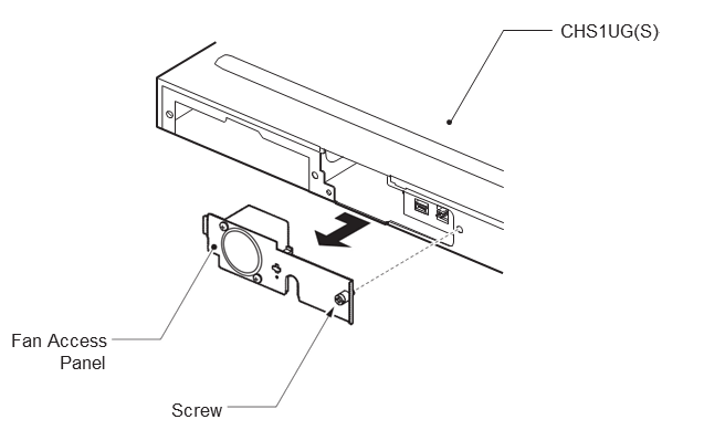 Вставьте язычок панели доступа к вентилятору в слот на задней панели корпуса CHS1UG (S) (см. рисунок ниже).