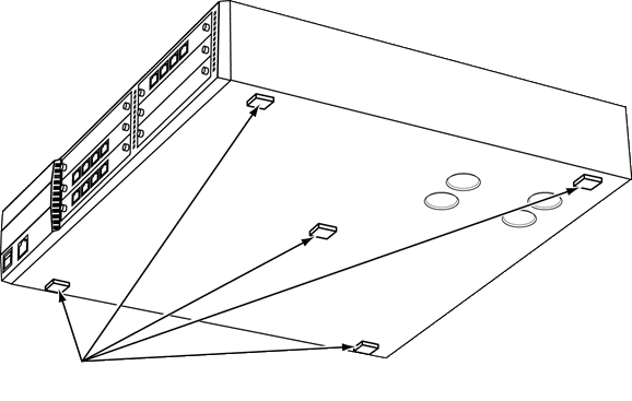 - Установите пять резиновых ножек в нижнюю часть корпуса.
