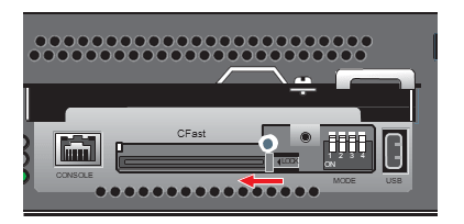 В случае карты CFast зафиксируйте карту, сдвинув фиксатор карты влево..