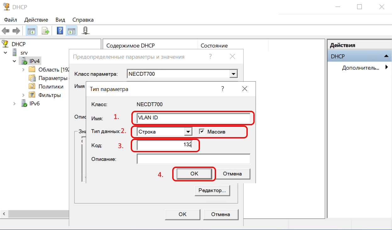 - Настройка предопределенного параметра 132 (VLAN ID)