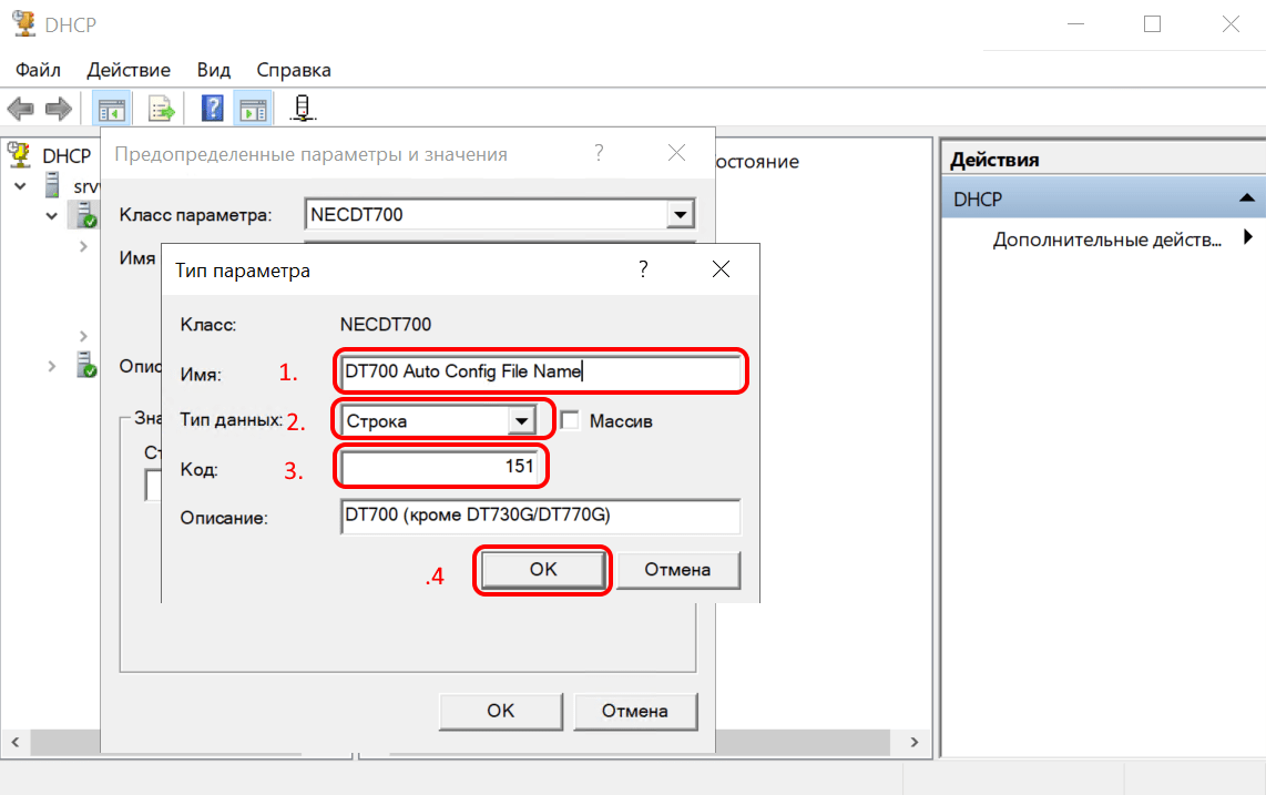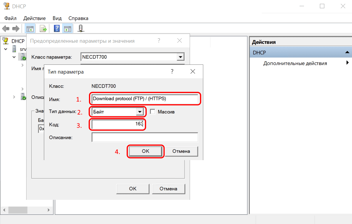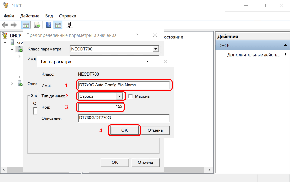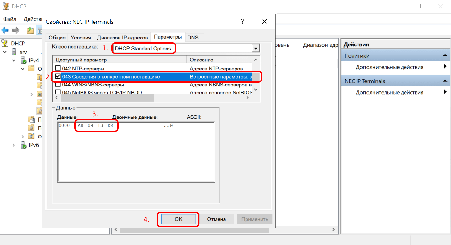 - Настройка предопределенного параметра 043 (Vendor Specific Information)