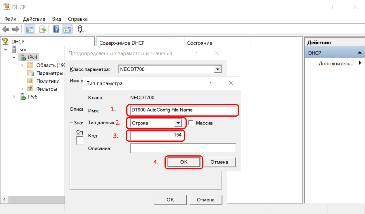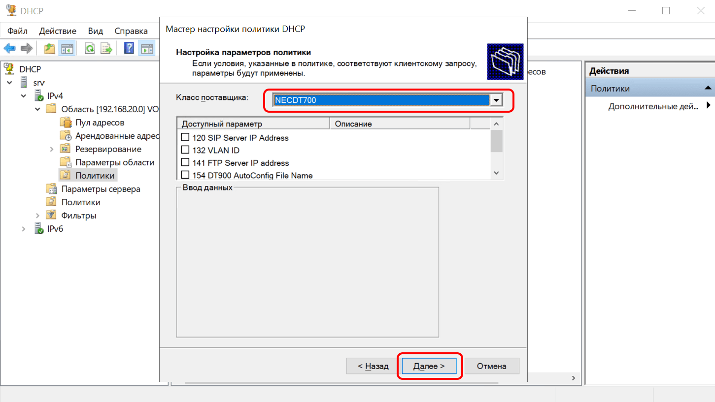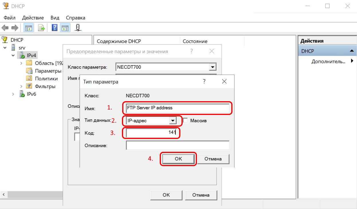 - Настройка предопределенного параметра 043 (Vendor Specific Information)