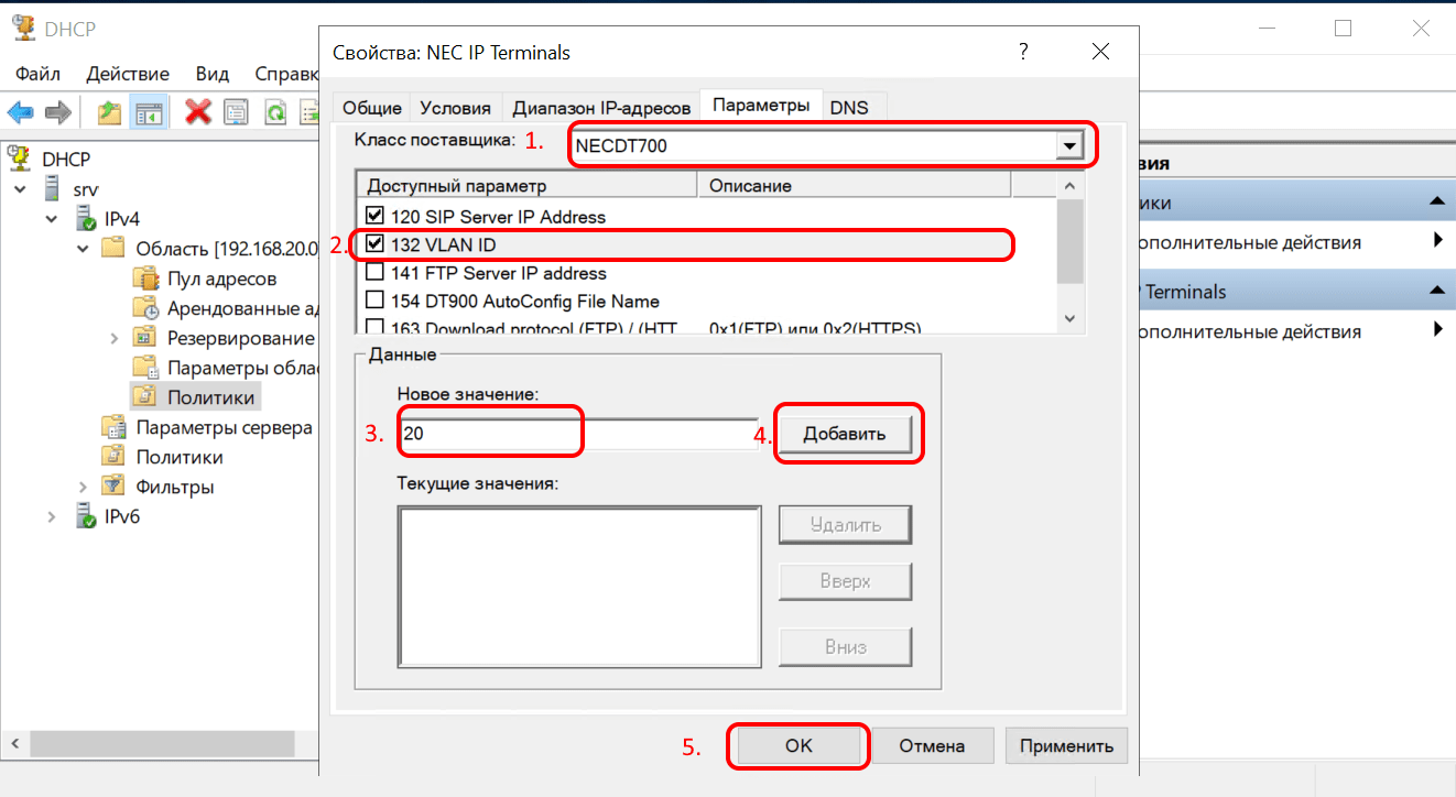 Найдите в списке "Доступный параметр" опцию 132 VLAN ID.
